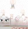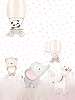 Gyerek fotótapéta mosható viles afrikai állatok szív mintával, léghajóval rózsaszín színben