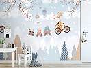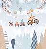 Gyerek fotótapéta mosható viles Állatos hegyvidéki tájkép mintával léghajókkal, kék színű