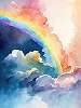 Gyerek fotótapéta mosható viles vízfestékkel festett szivárvány a felhők között élénk színű
