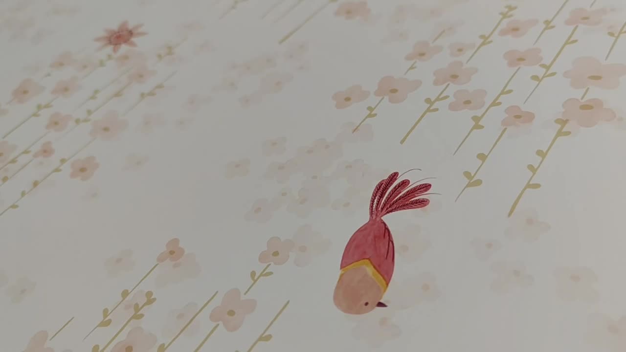 Gyerek tapéta lányszobába rózsaszín madár virág mintával