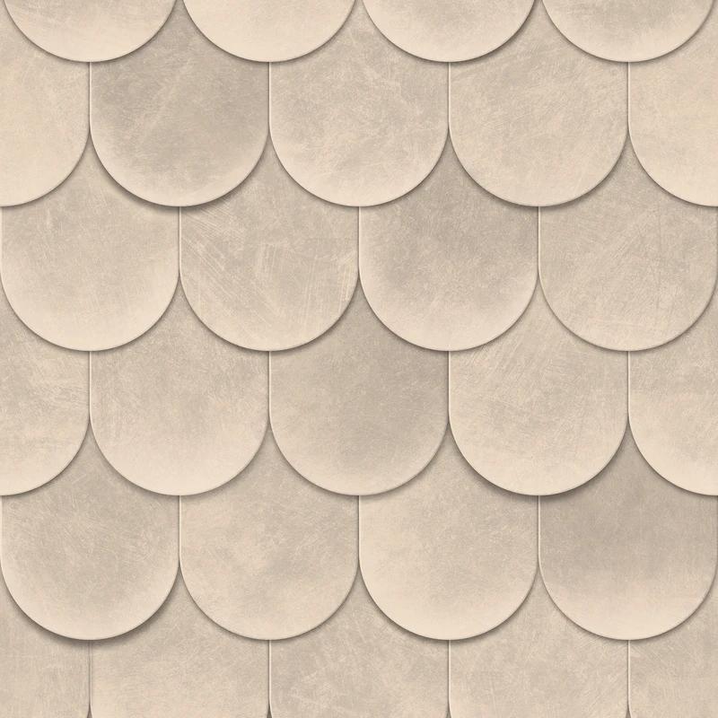 Hódfarok tetőcserép minta mosható vlies dekor tapéta beige színben, modern és loft stílushoz