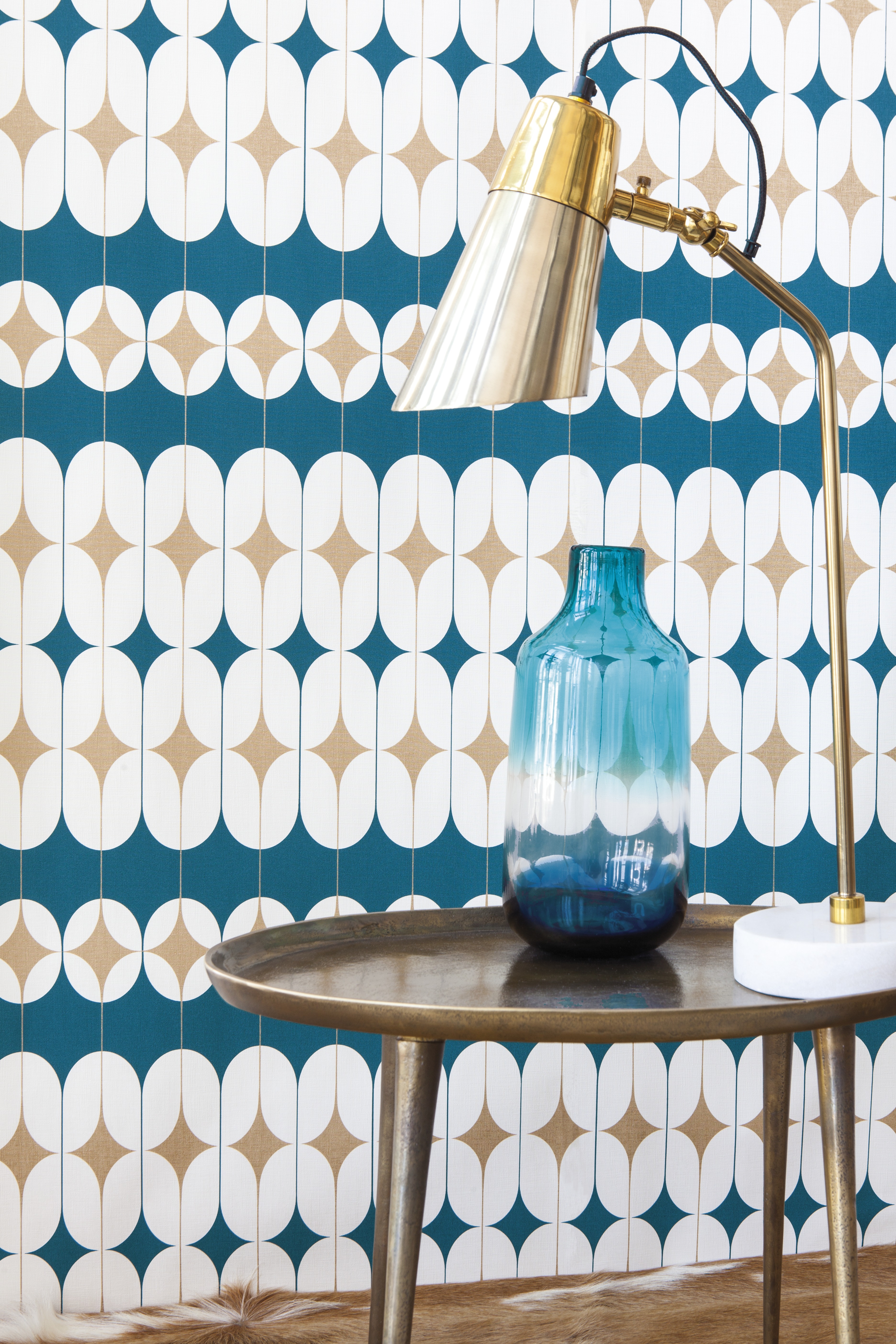 Kék, arany artdeco mintás tapéta