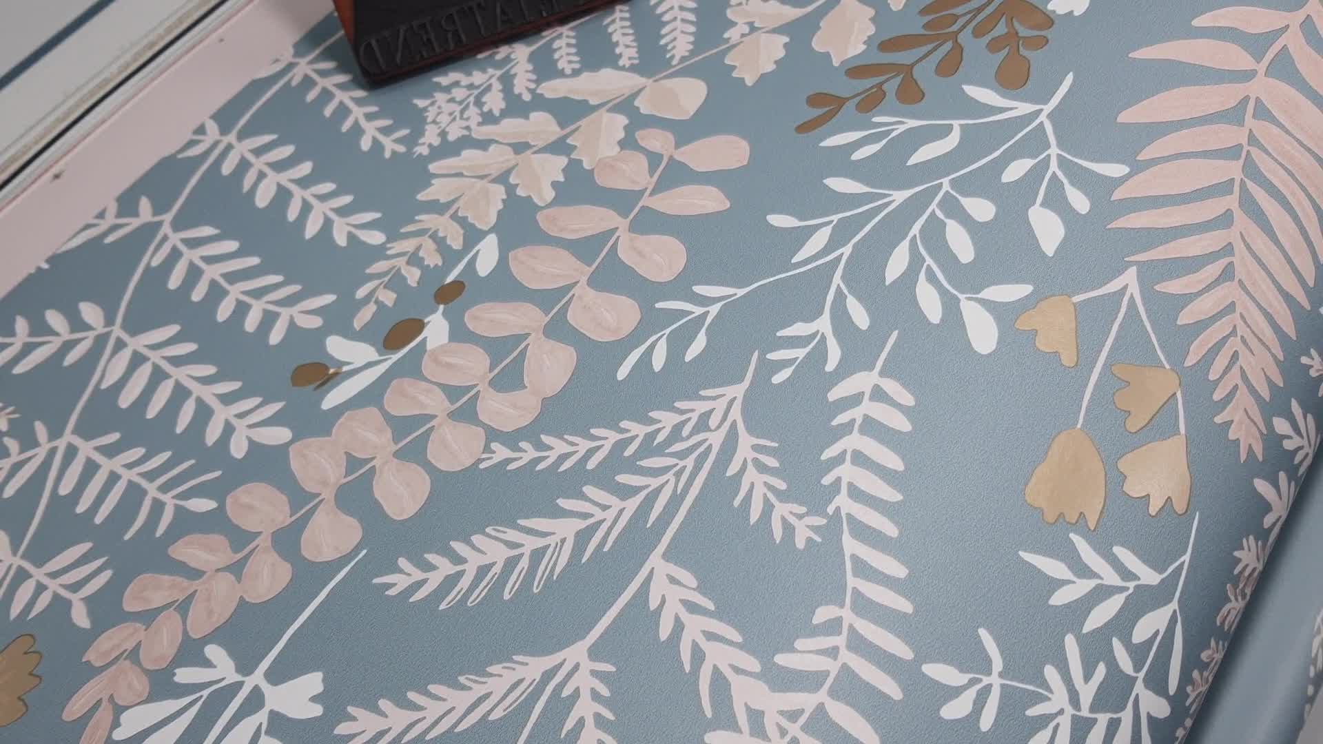 Kék levélmintás akvarell stílusú caselio design tapéta