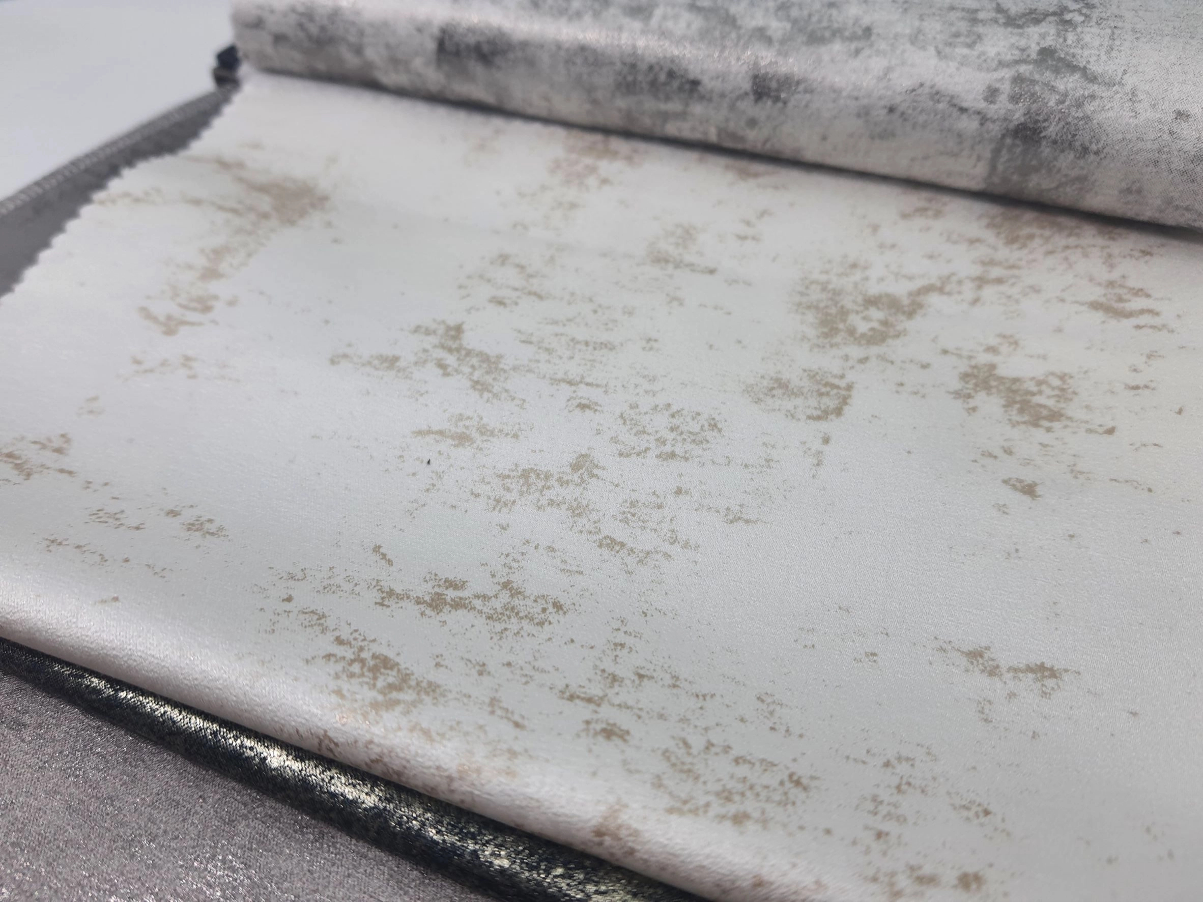 Koptatott hatású krémfehér arany fényes felületű függöny dekor anyag