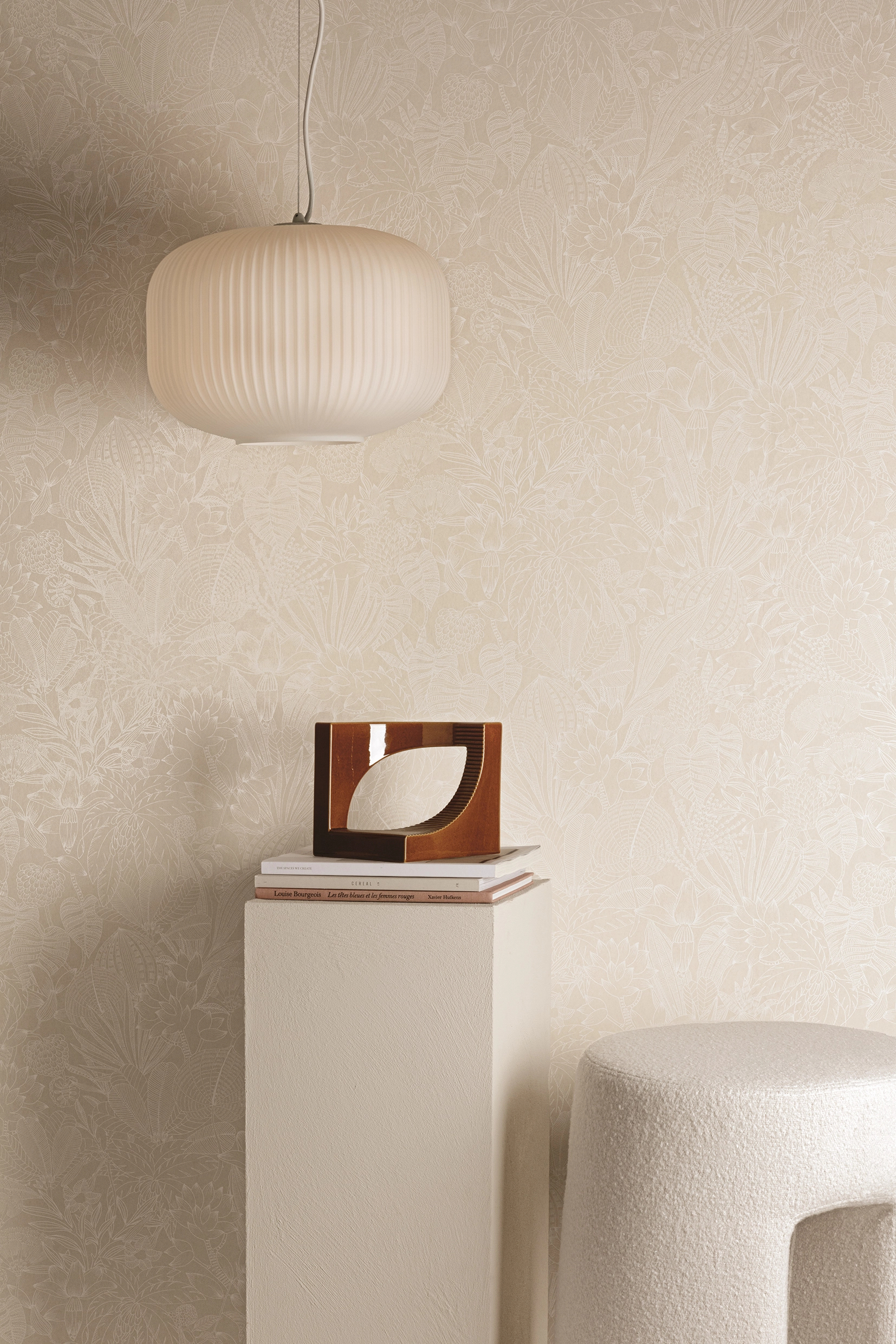 Krém dekor tapéta finom minimál levél botanikus mintával