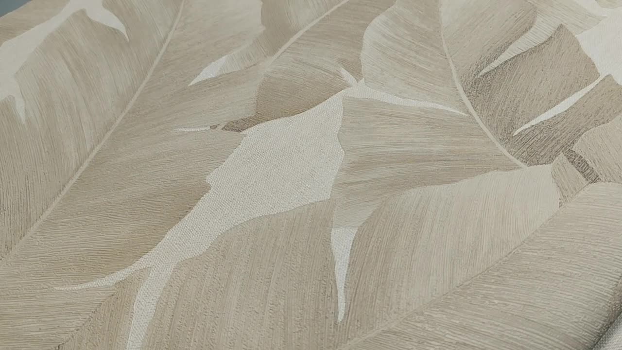 Krémfehér barna banánlevél mintás vlies dekor tapéta