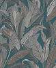 Levélmintás design tapéta hímzett hatással türkizkék színben