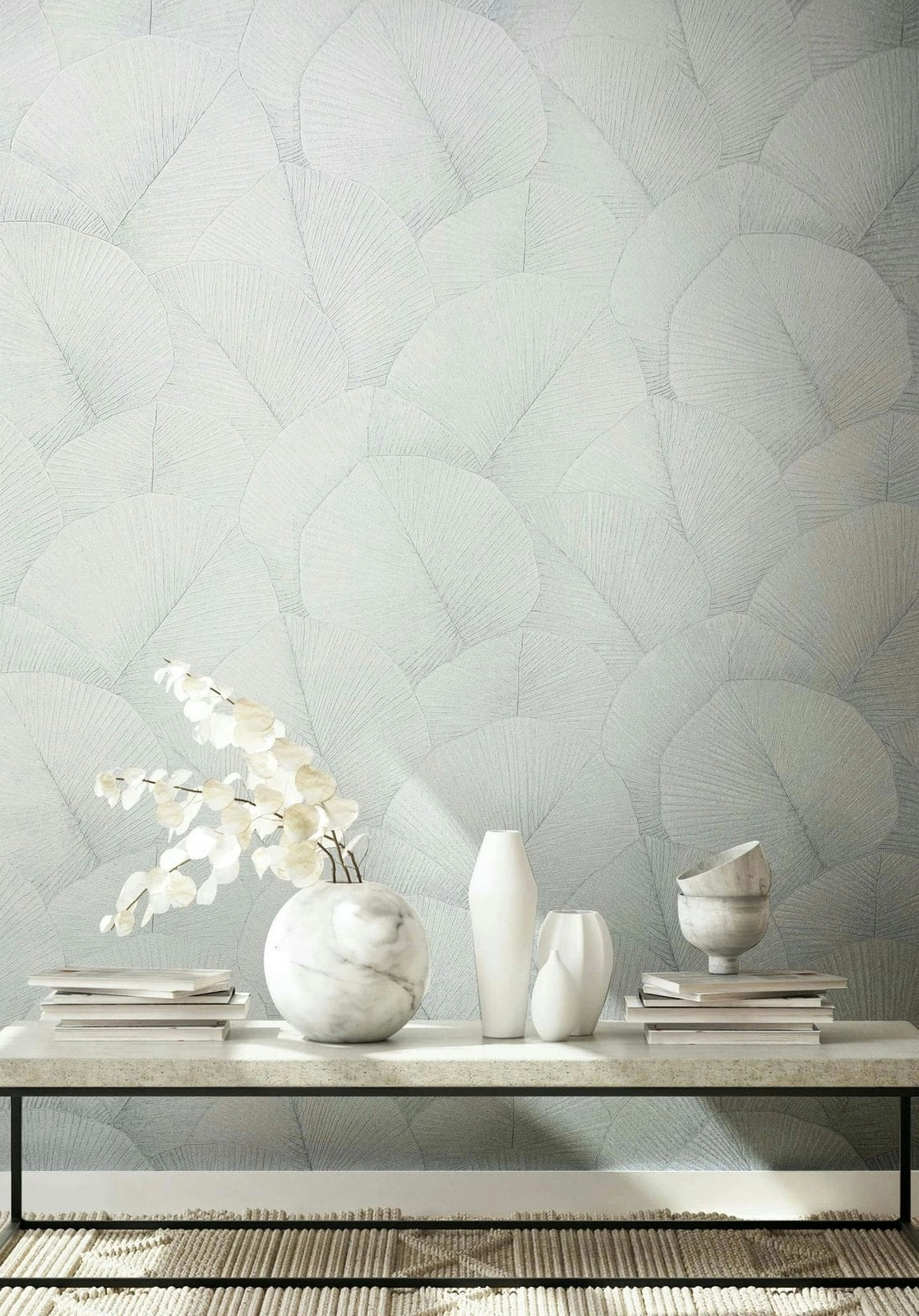 Levélmintás vinyl dekor tapéta törtfehér szinben
