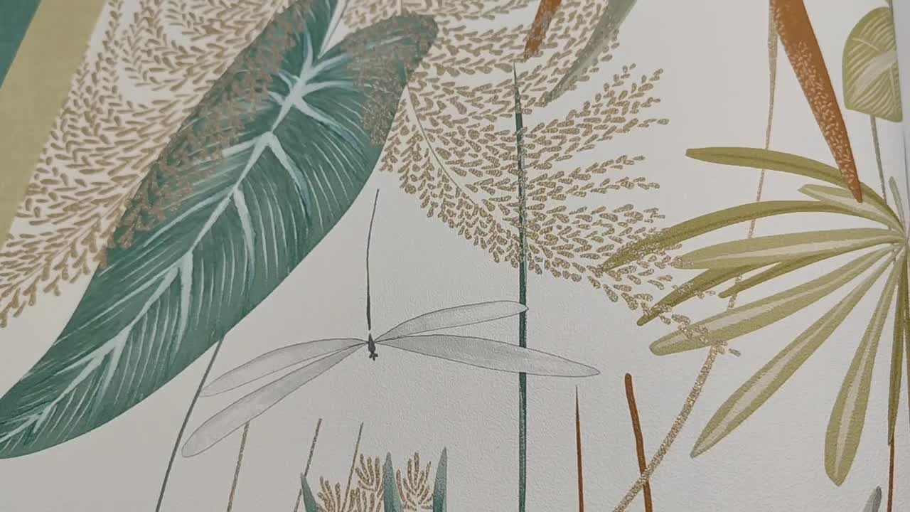 Levélmintás vinyl tapéta türkiz zöld leveles mintával