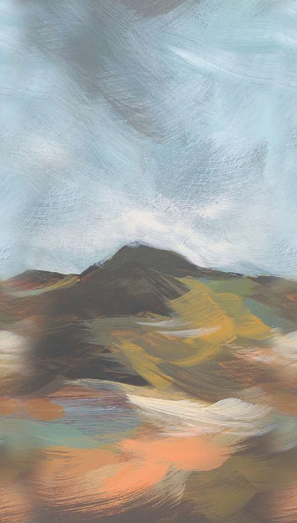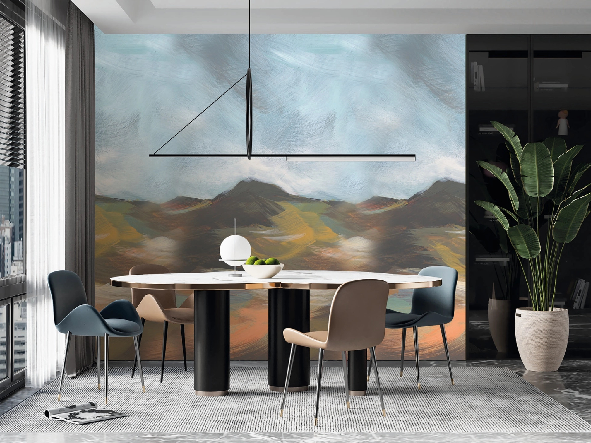 Mosható dekor fotótapéta festett tájkép mintával zöld és narancs szinben