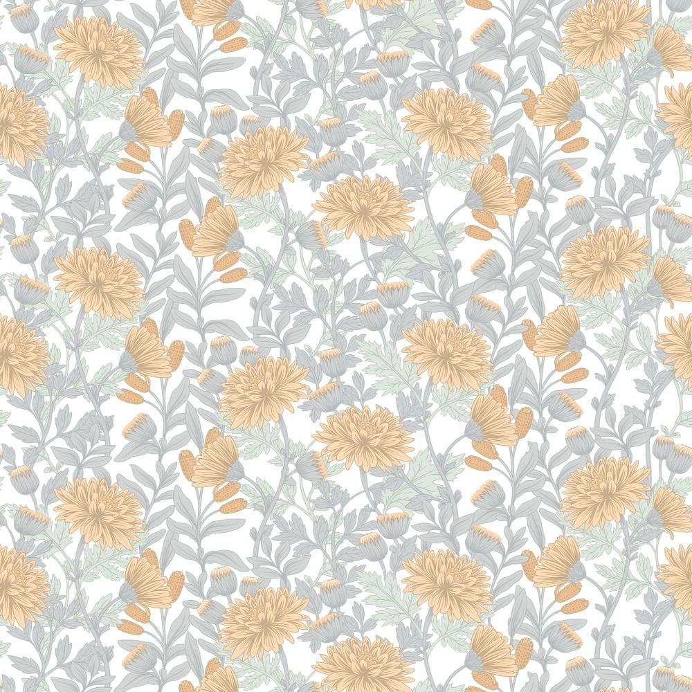 Mosható dekor tapéta mustársárga és pasztelkék színű körömvirág mező mintával