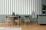 Mosható dekor tapéta széles csíkos mintával zöldesszürke színben