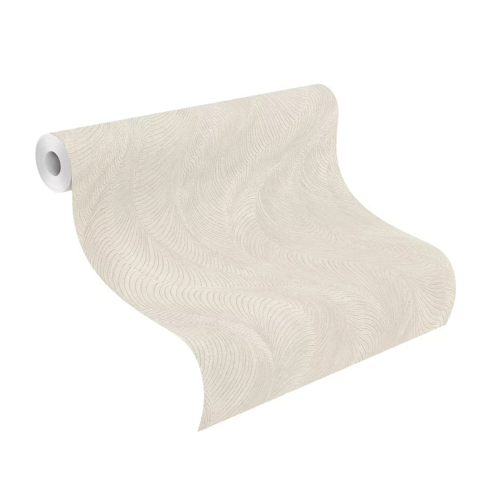 Mosható dekor tapéta törtfehér és fényes gyöngyház színben vonalas hullám mintával