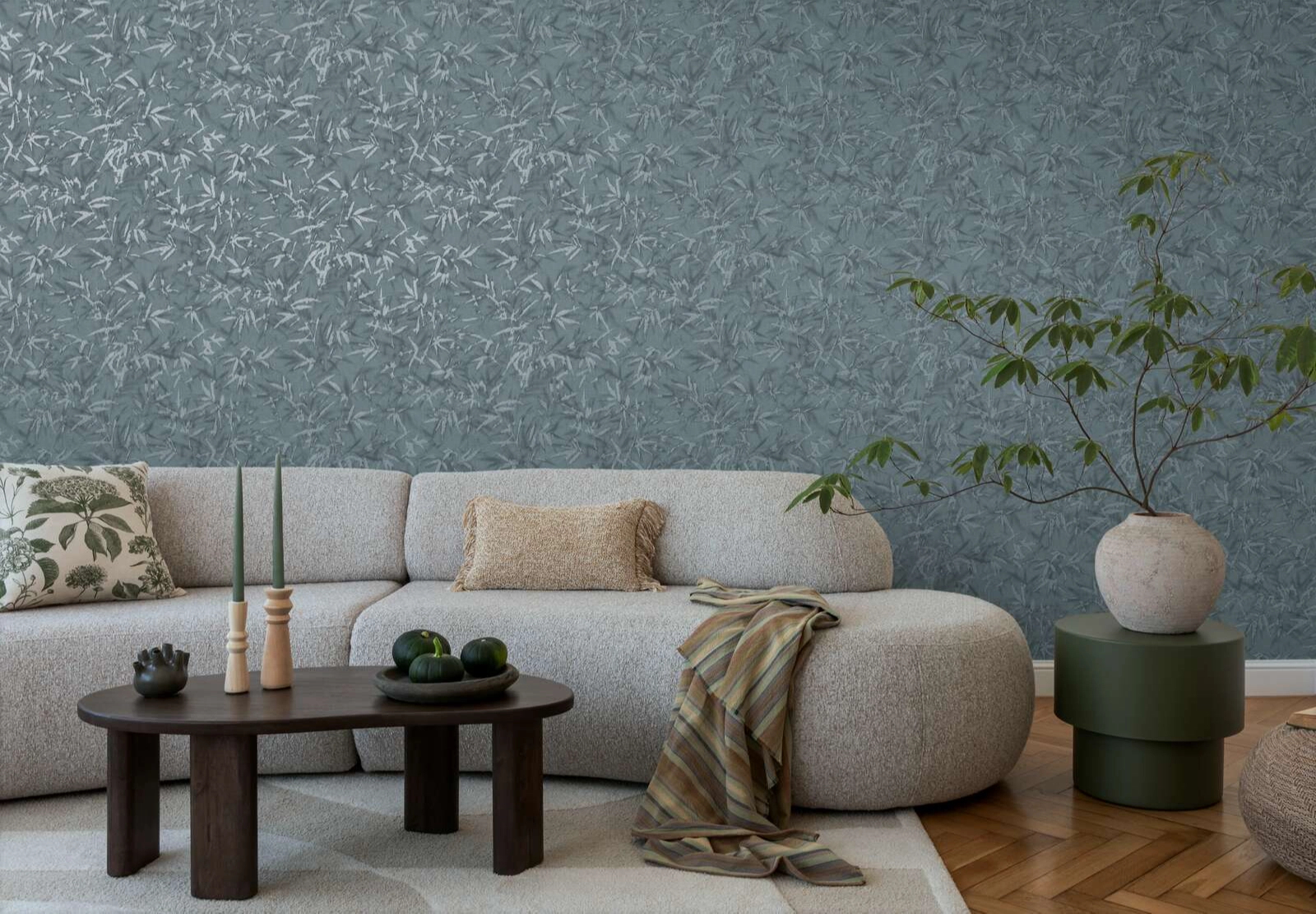 Mosható vinyl dekor tapéta bambusz levél mintás viharkék színben