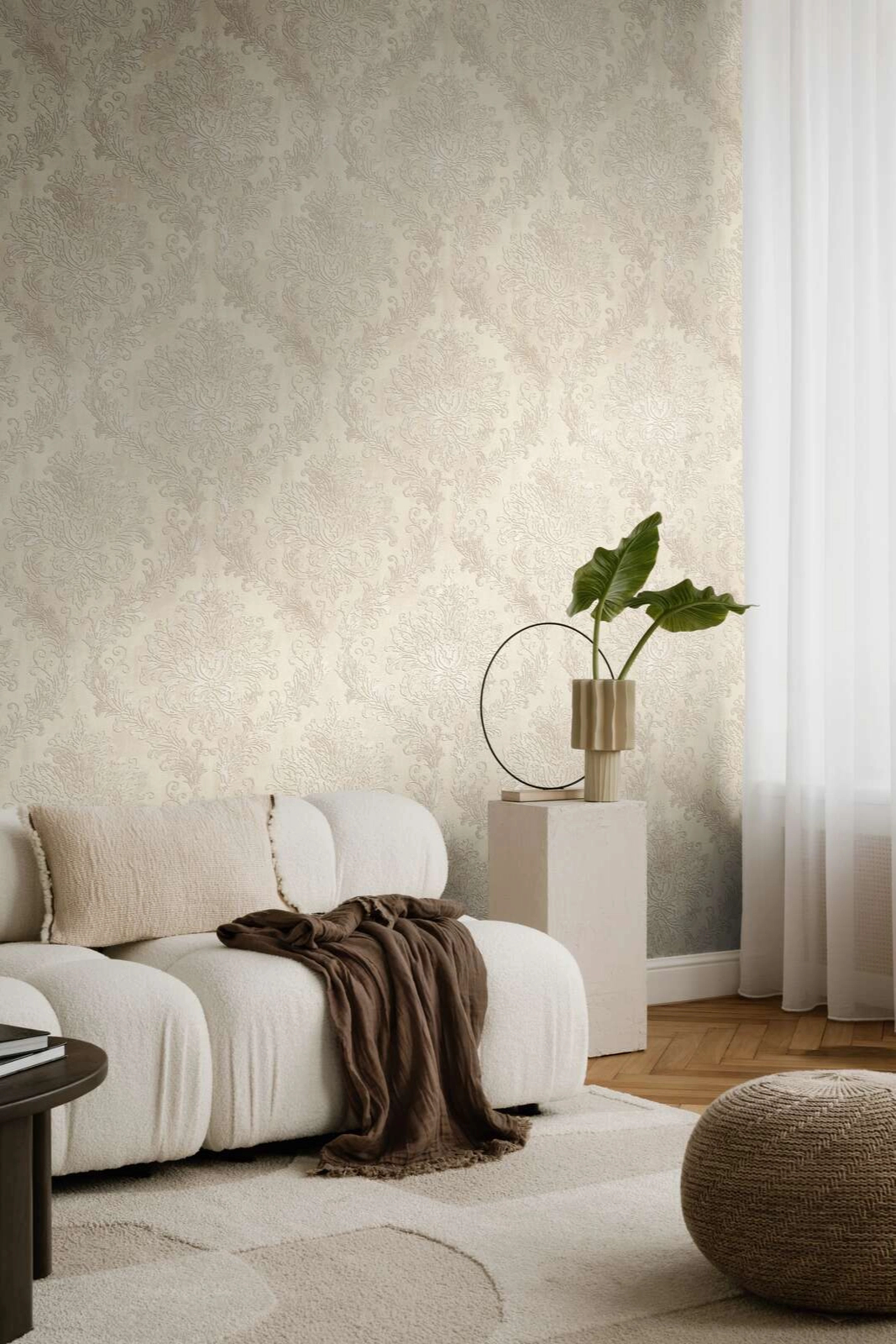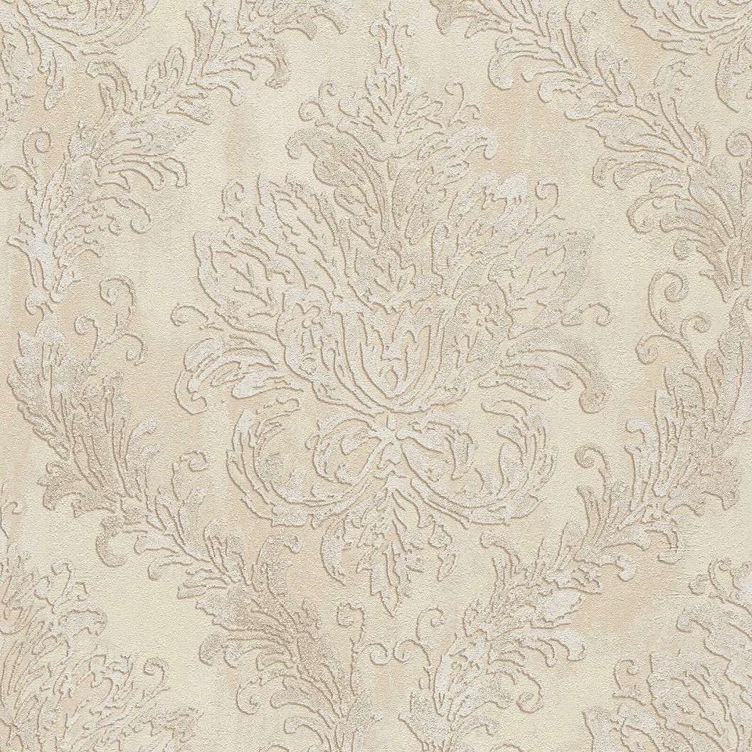 Mosható vinyl dekor tapéta bimbózó virág mintás krém és fényes ezüst színben