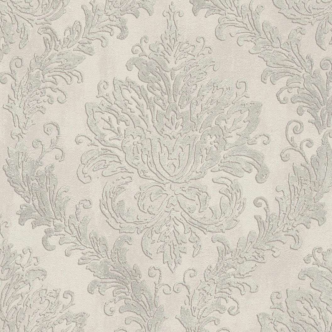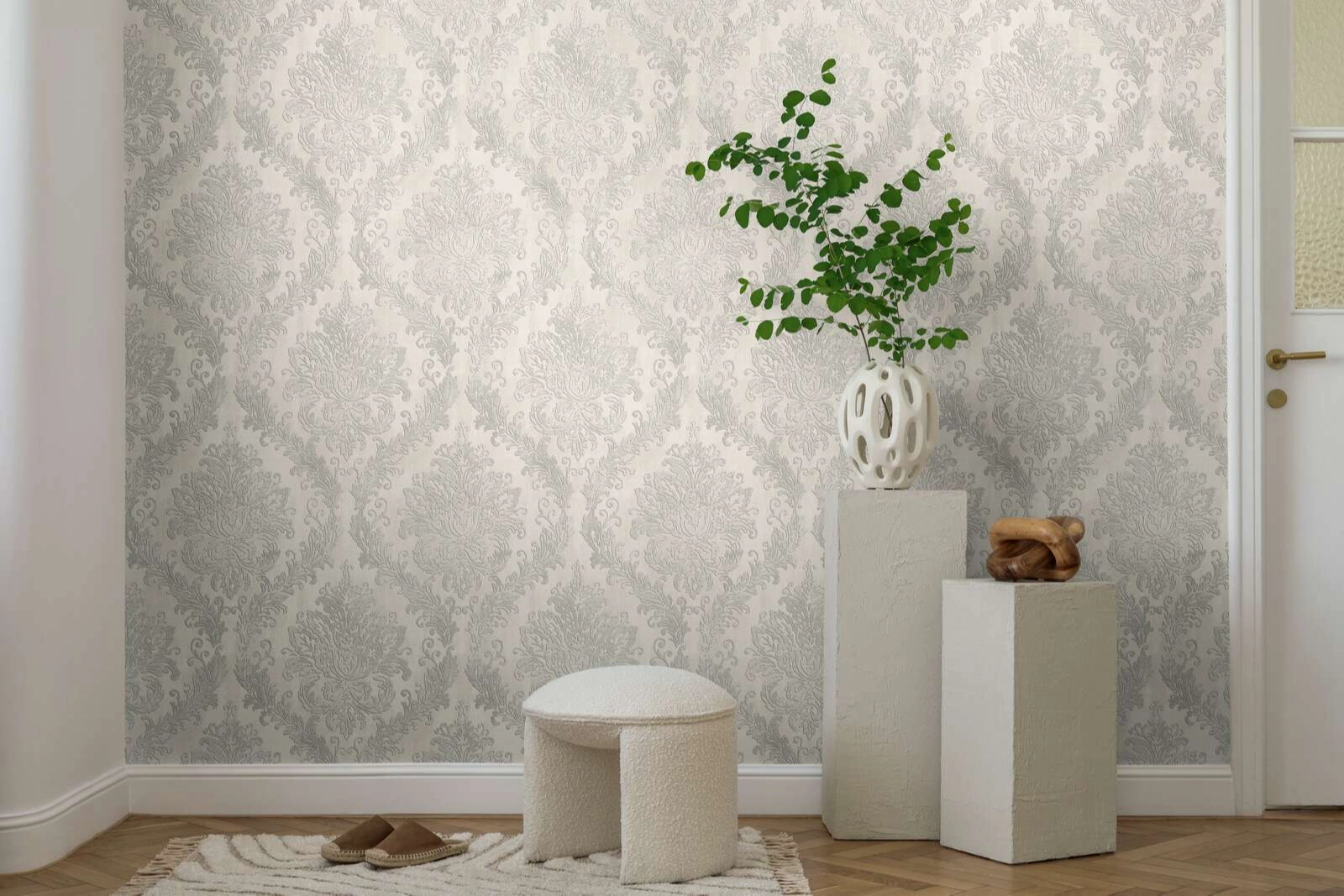 Mosható vinyl dekor tapéta bimbózó virág mintás törtfehér és fényes ezüst színben