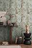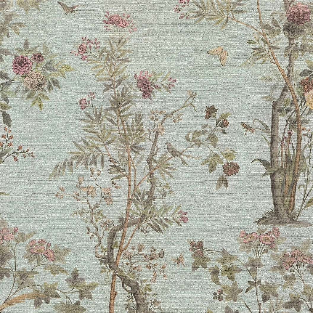 Mosható vinyl dekor tapéta virágzó leander madárkával és pillangókkal mintás mentazöld színben