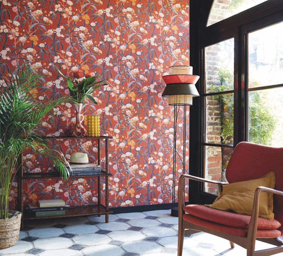 Narancs elegáns virágmintás vlies prémium design tapéta