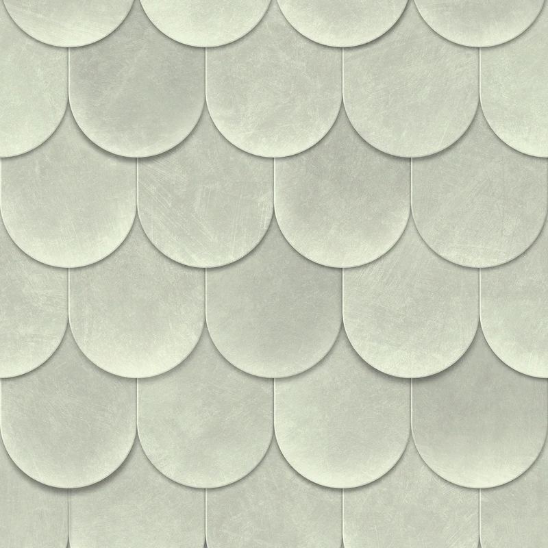 Hódfarok tetőcserép minta mosható vlies dekor tapéta zsályazöld színben, modern és loft stílushoz