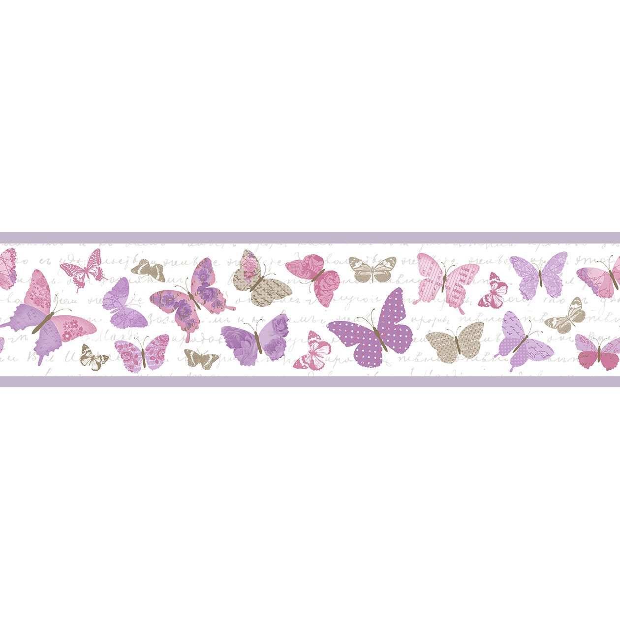 Pillangó mintás bordűr, lilás szín dominanciával.