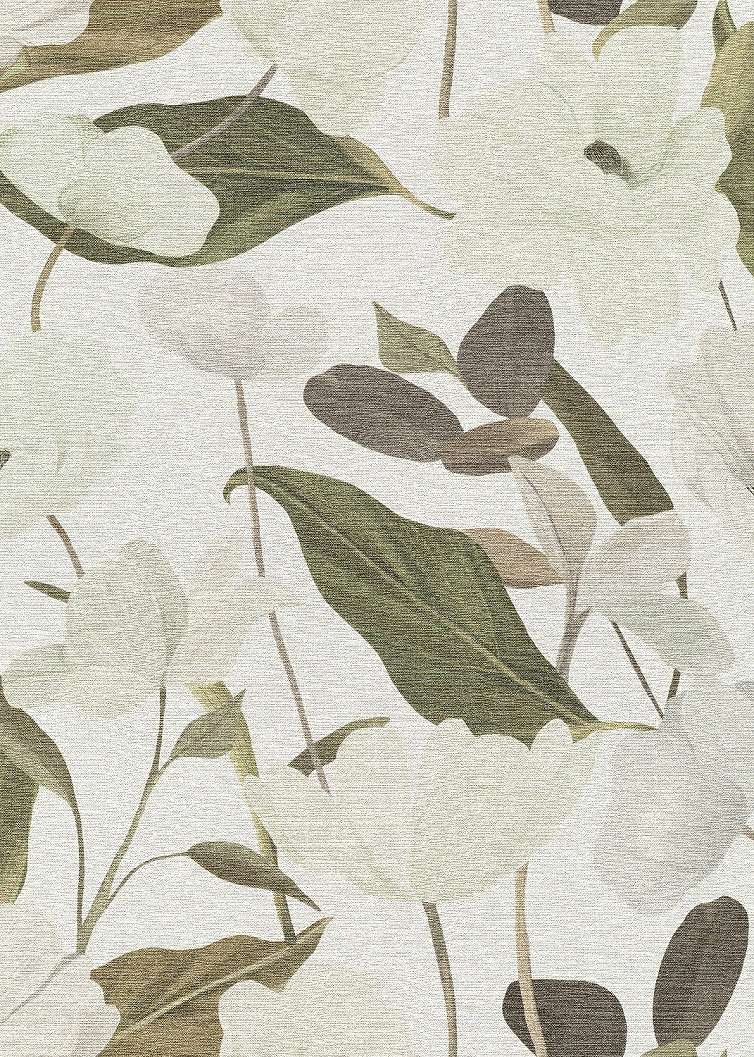 Romantikus mosható dekor tapéta magnólia virágos mintával olivazöld színben, vintage és természeti stílushoz