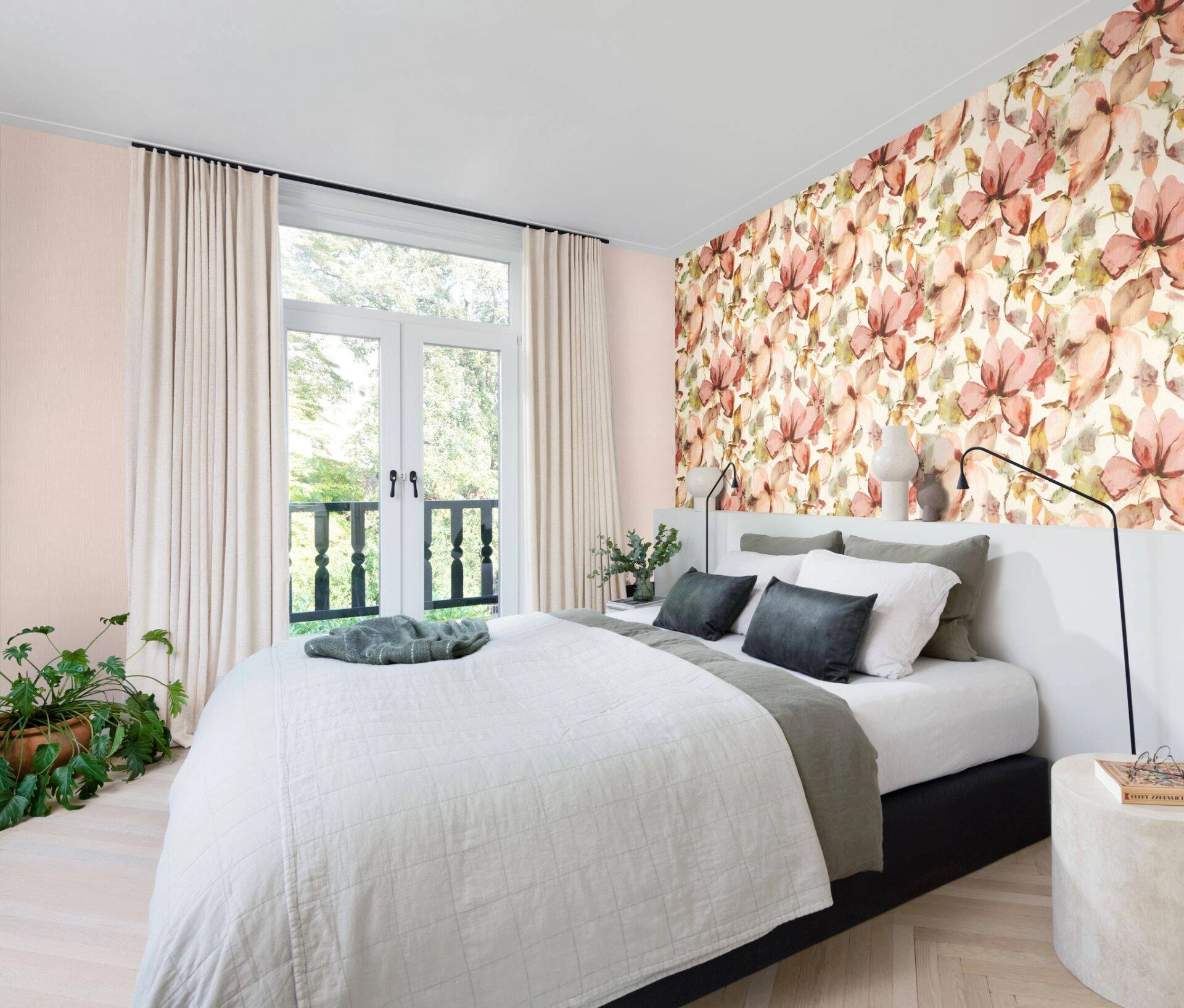 Rózsaszín romantikus akvarell virágmintás tapéta