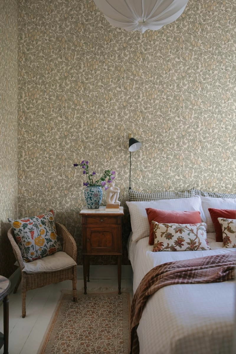 Skandináv dekor tapéta szilvafa mintával zab színben Emrik, Oat, romantikus és vintage stílushoz