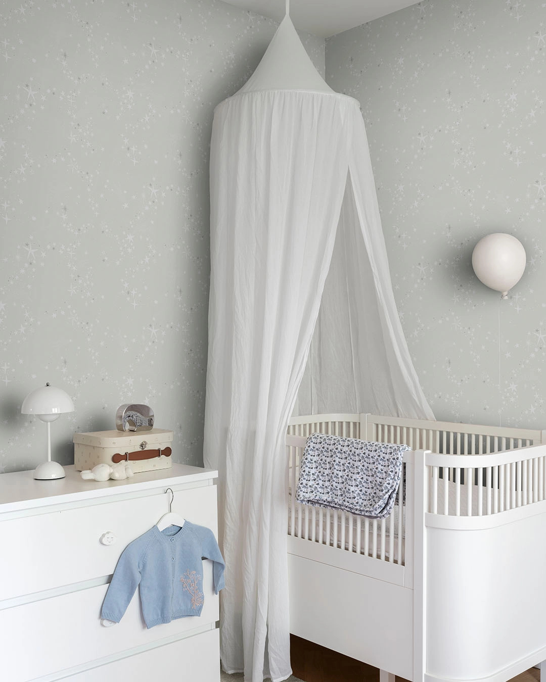 Skandináv gyerek tapéta szürke színben csillag mintával