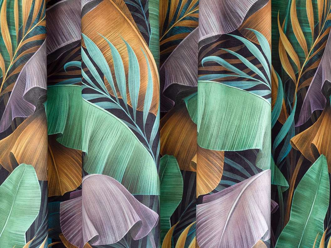 Sötétítő függöny textil anyag többszínű trópusi mintával