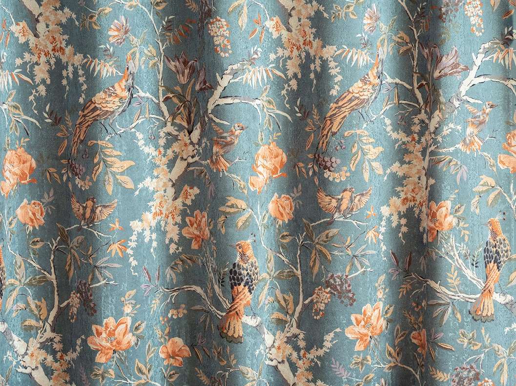 Sötétítő függöny textil anyag kék alapon madár és levél mintával