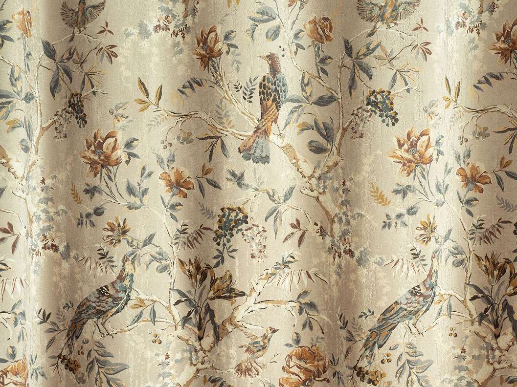 Sötétítő függöny textil anyag levél és madár mintával bézs alappal