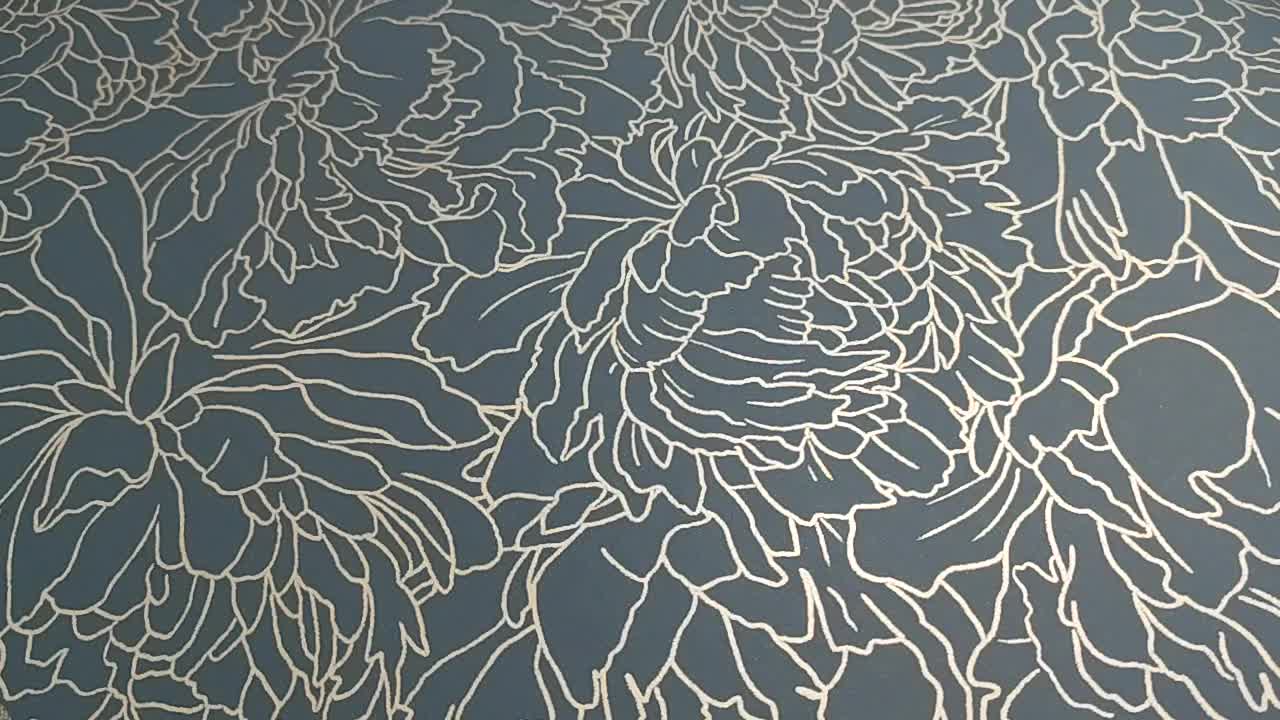 Sötétkék arany dekor tapéta elegáns virág mintával