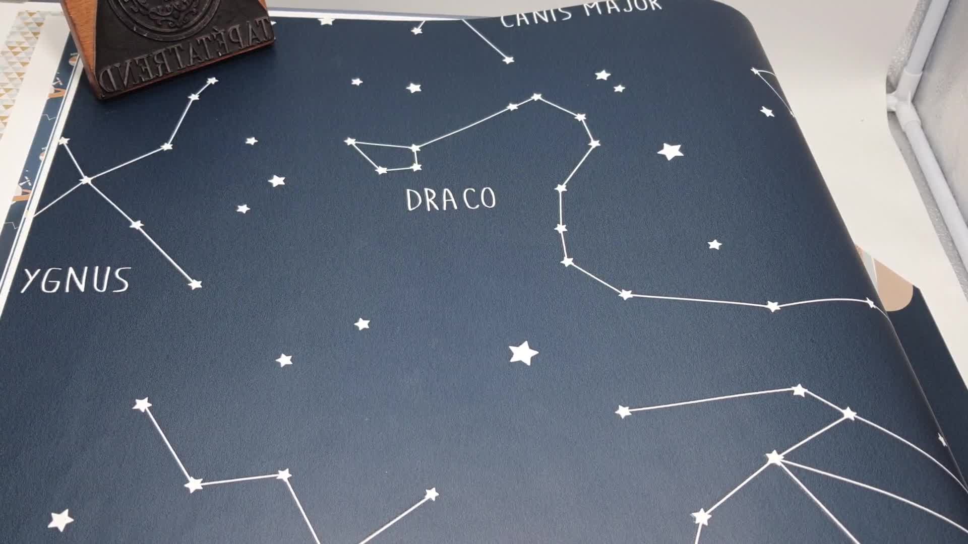 Sötétben foszforeszkáló csillag és csillagkép mintás gyerekszobai vlies design tapéta.