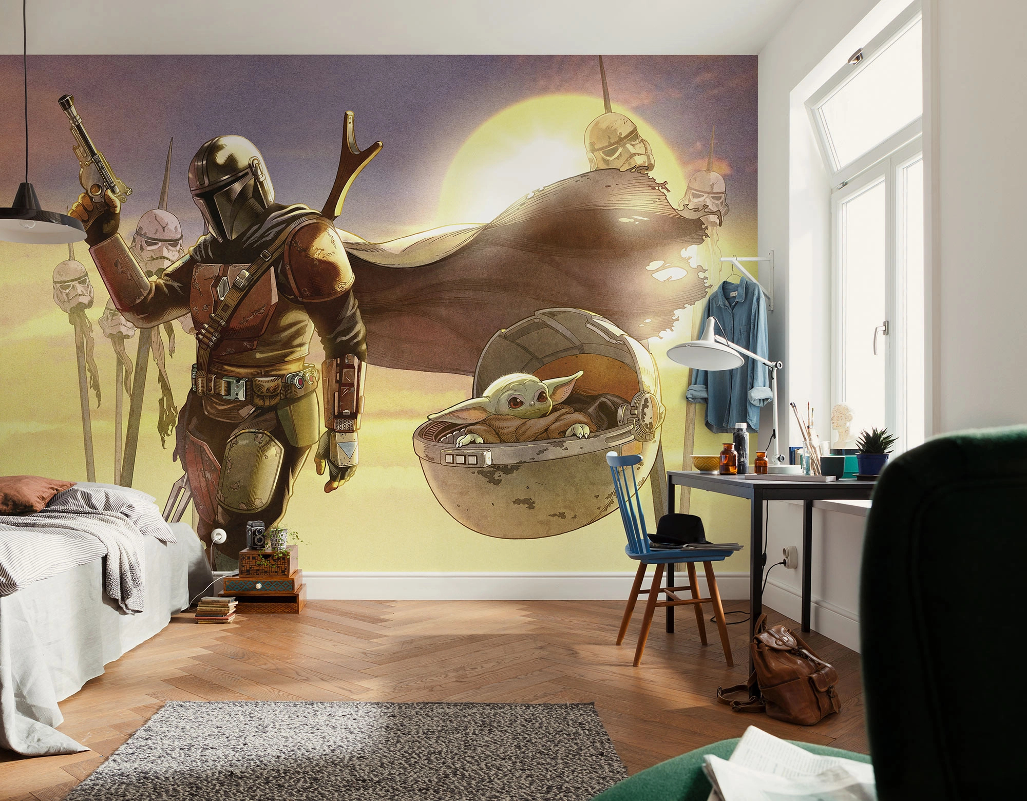 Star Wars fotótapéta Mandalóri és Grogu küldetésen Tini szobába képregény stílusban