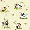 Színes lovas-virágos-pöttyös mintás gyerek tapéta