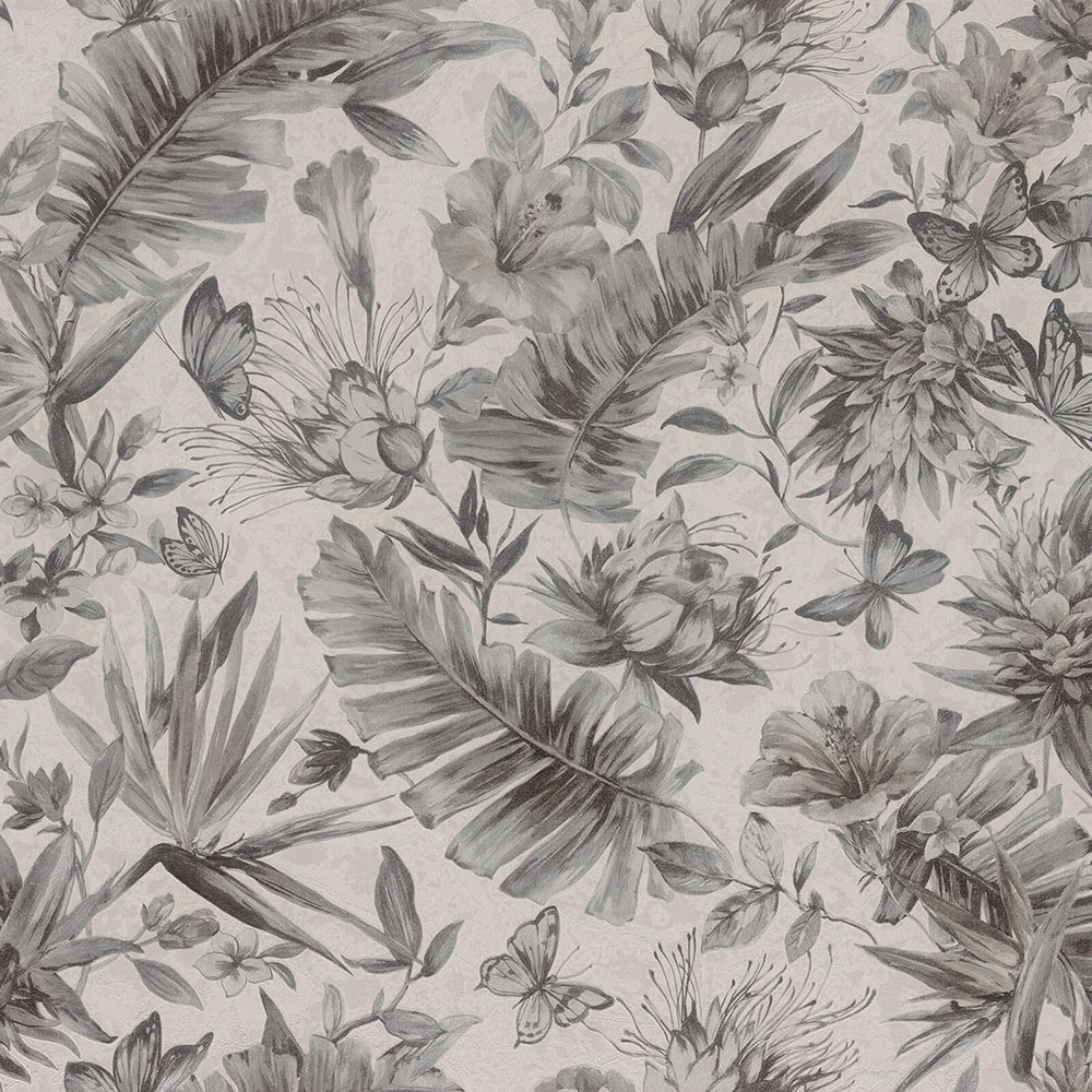 Szürke árnyalatú trópusi hangulatú vlies tapéta