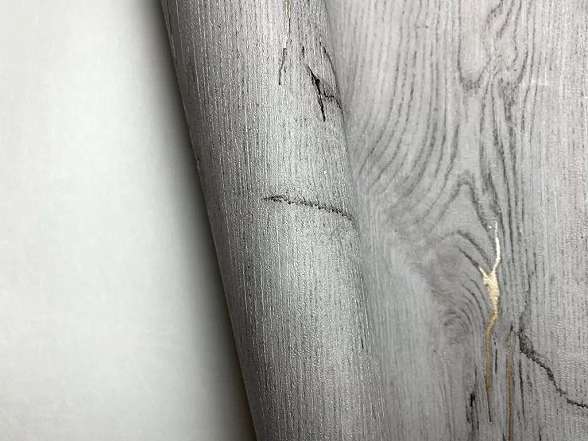 Szürke deszka mintás vlies tapéta arany metál effekt elemekkel