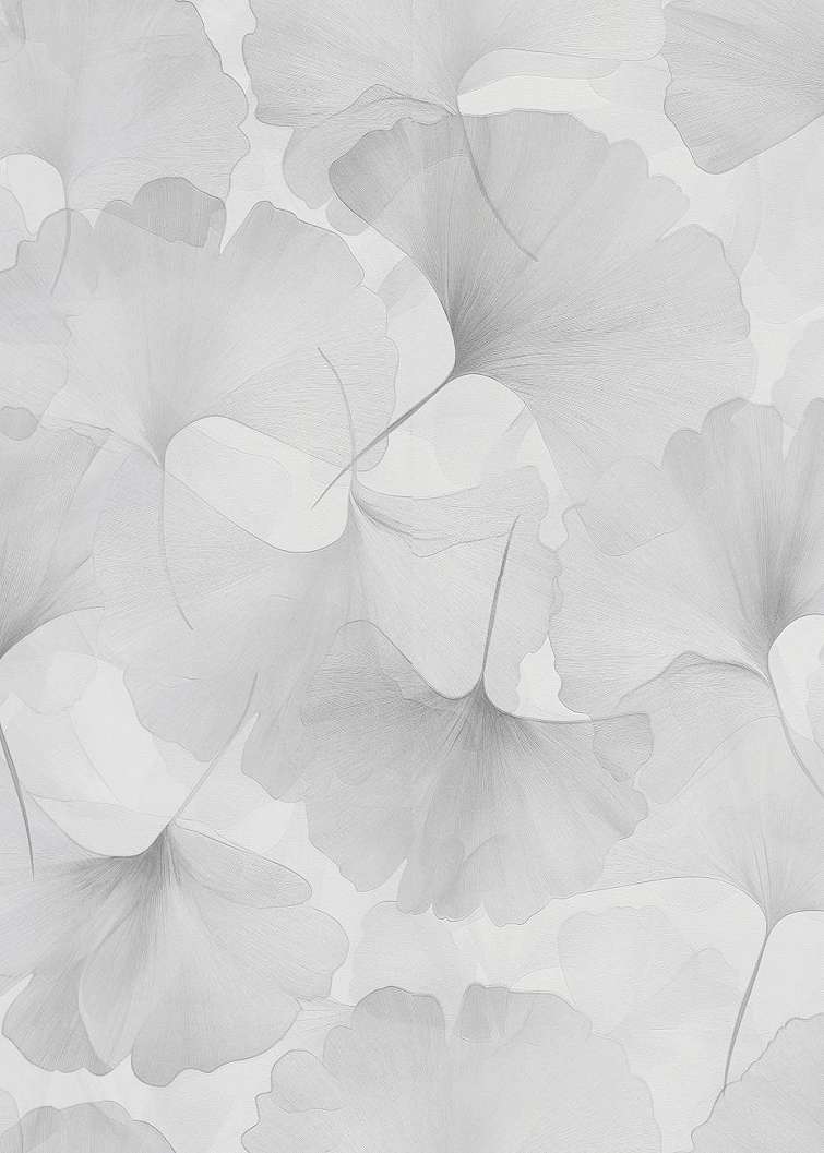 Szürke fehér botanikus levélmintás mosható design tapéta