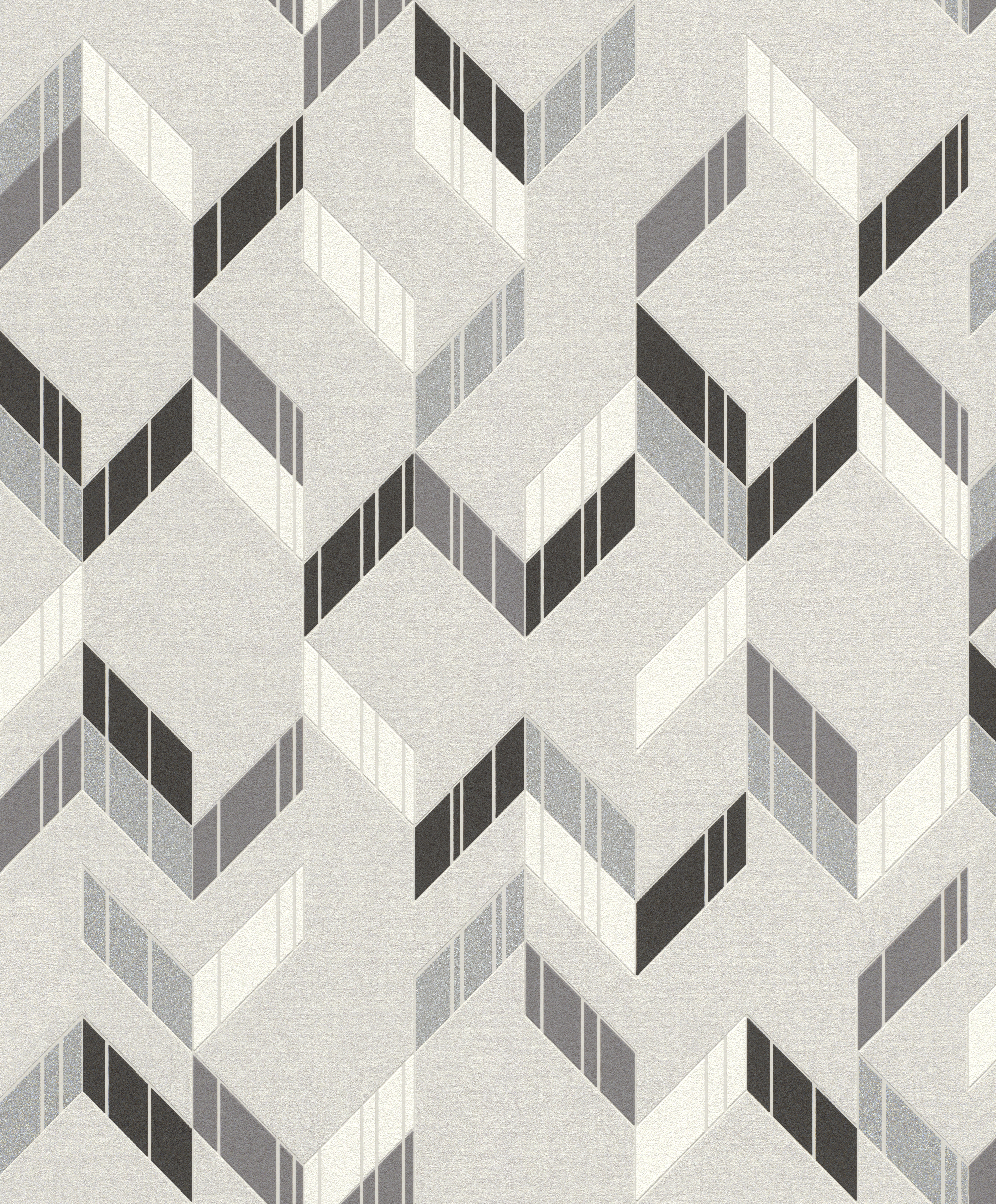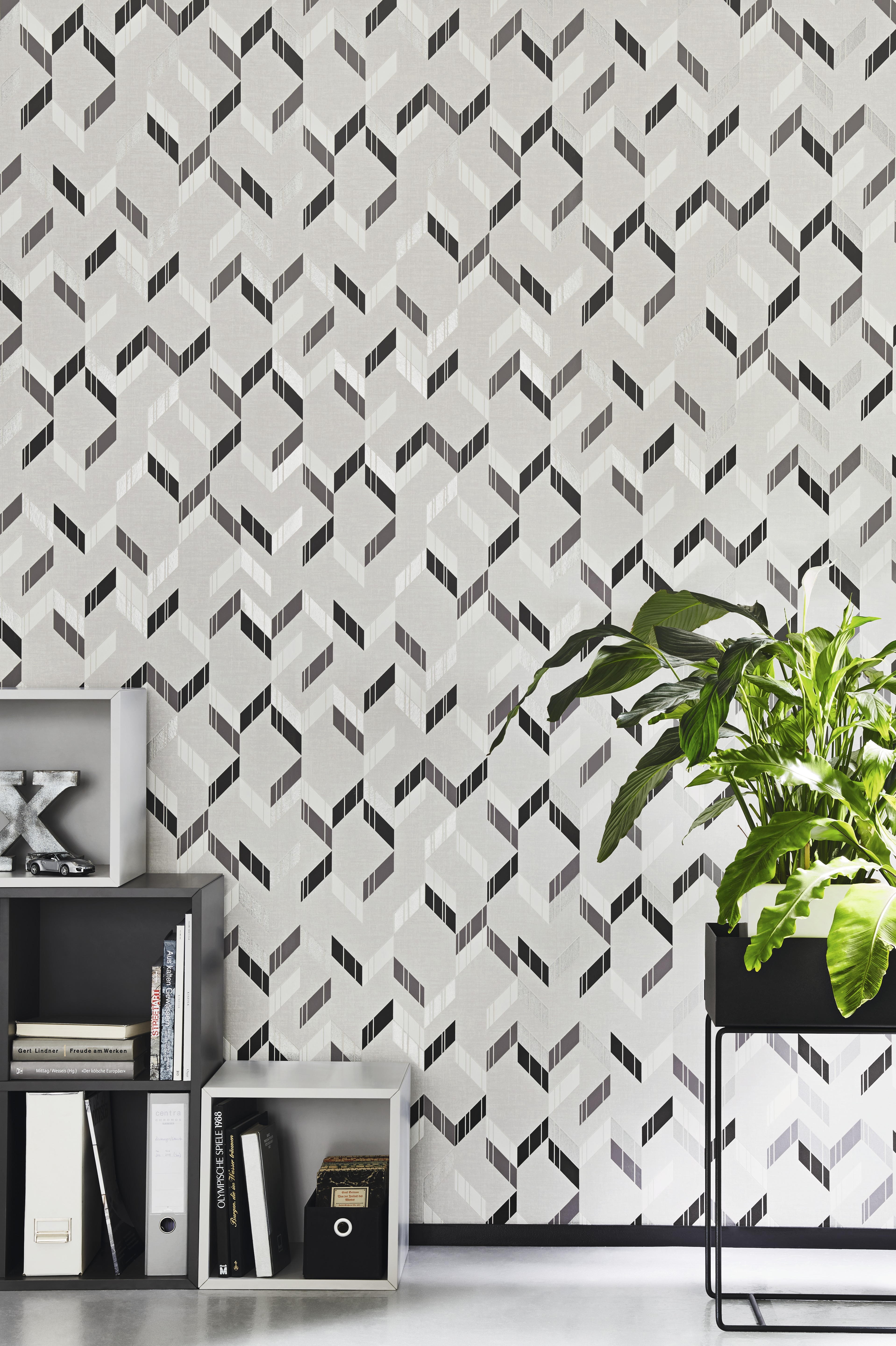 Szürke modern geometriai mintás tapéta ezüst fekete mintákkal