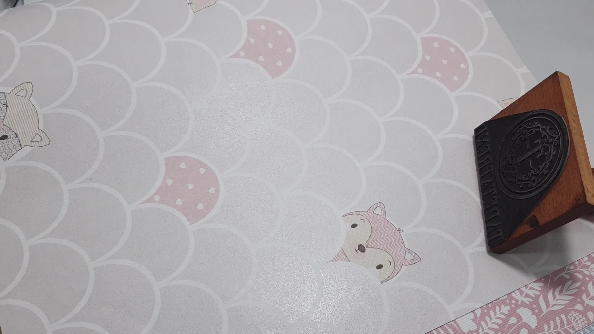 Szürke rózsaszín állat és geometrikus mintás gyerek tapéta