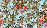 Trópusi botanika mintás sokszínű design tapéta világos kék alapon