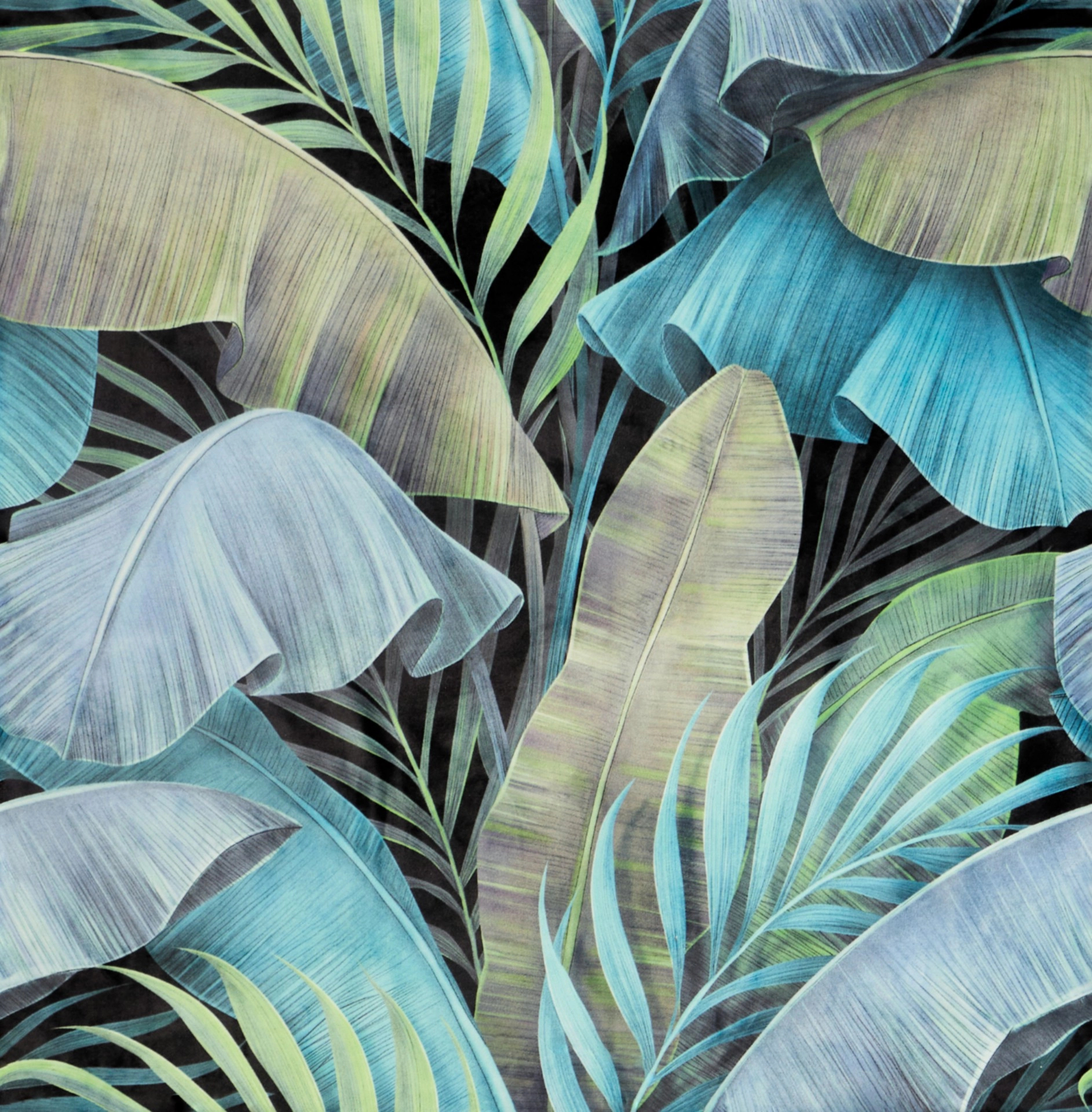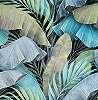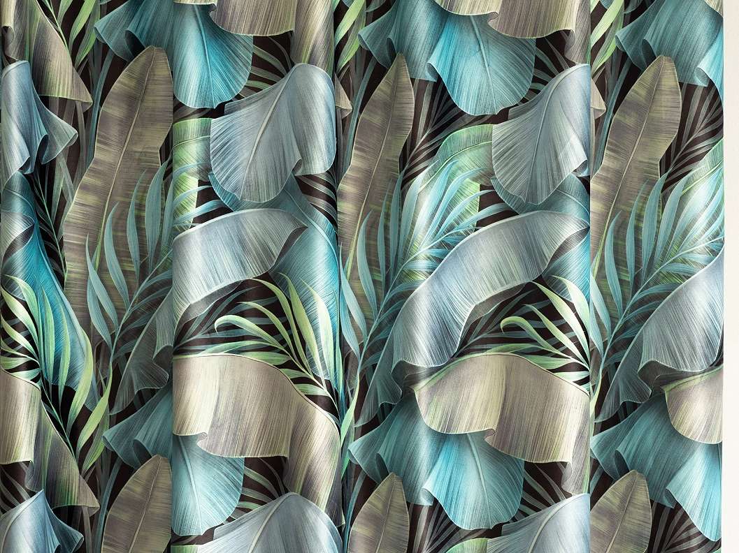 Trópusi levél mintás matt bársony érintésű kékes zöld függöny textil anyag