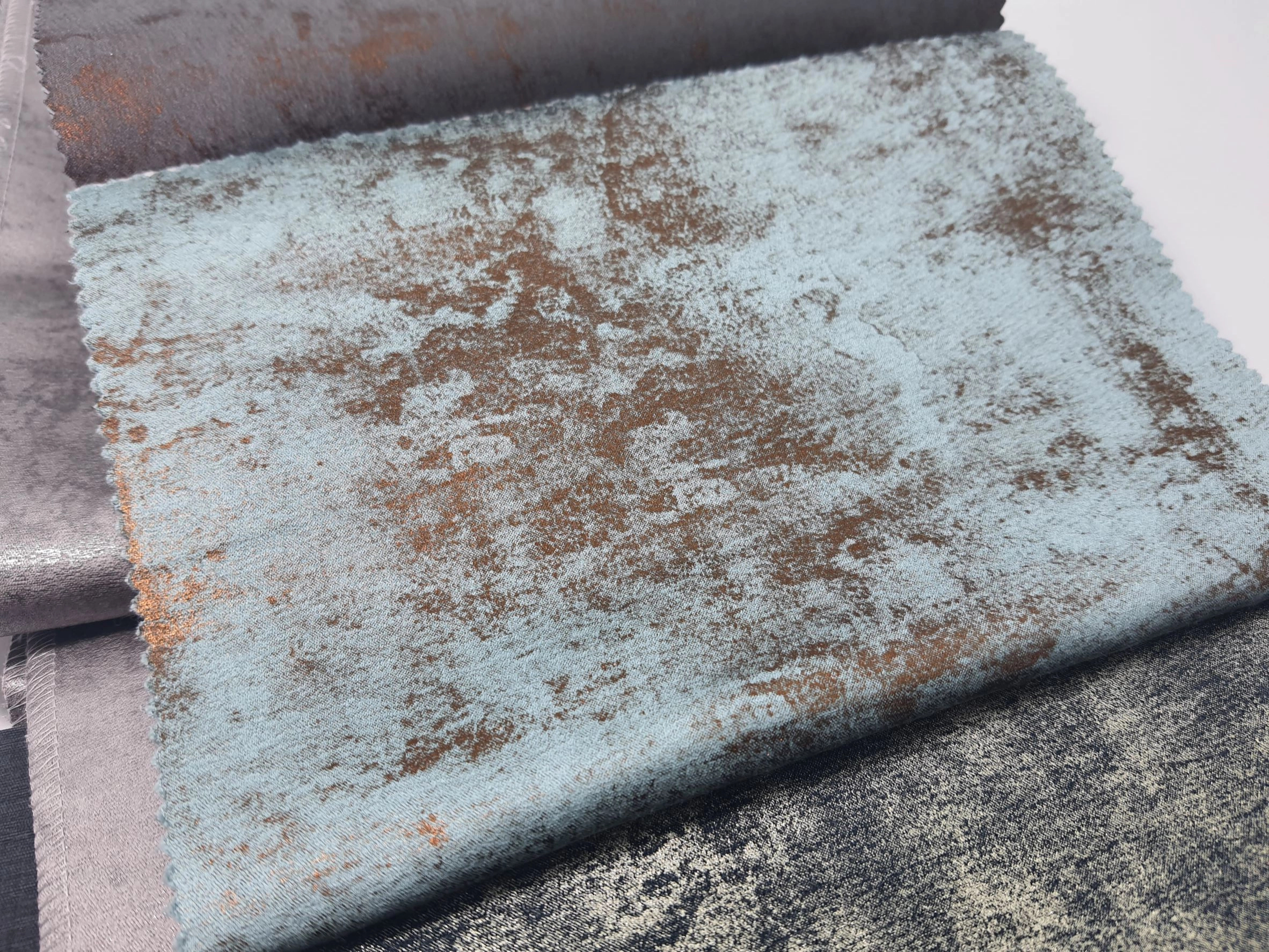 Türkiz bronz metál koptatott hatású sötétítő függöny textil anyag