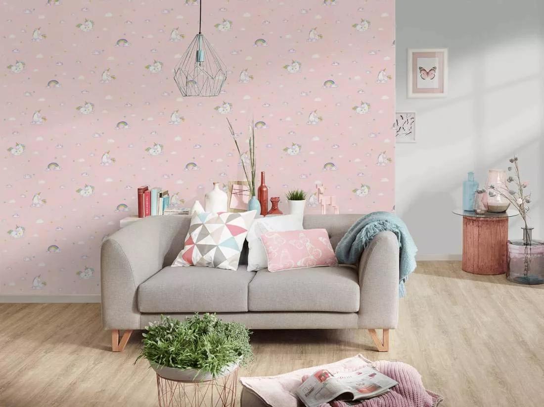 Trendi gyerektapéta unikornis mintával. Manapság a gyerektapéták között egyre trendibb unikornis mintával jelentkezik az egyik legnépszerübb tapéta gyártó az AS. Ez a fantasztikus rózsaszín alapon kedves rajzolt unikornis minta minden kislány szobájának elengedhetetlen díszítő eleme lehet.