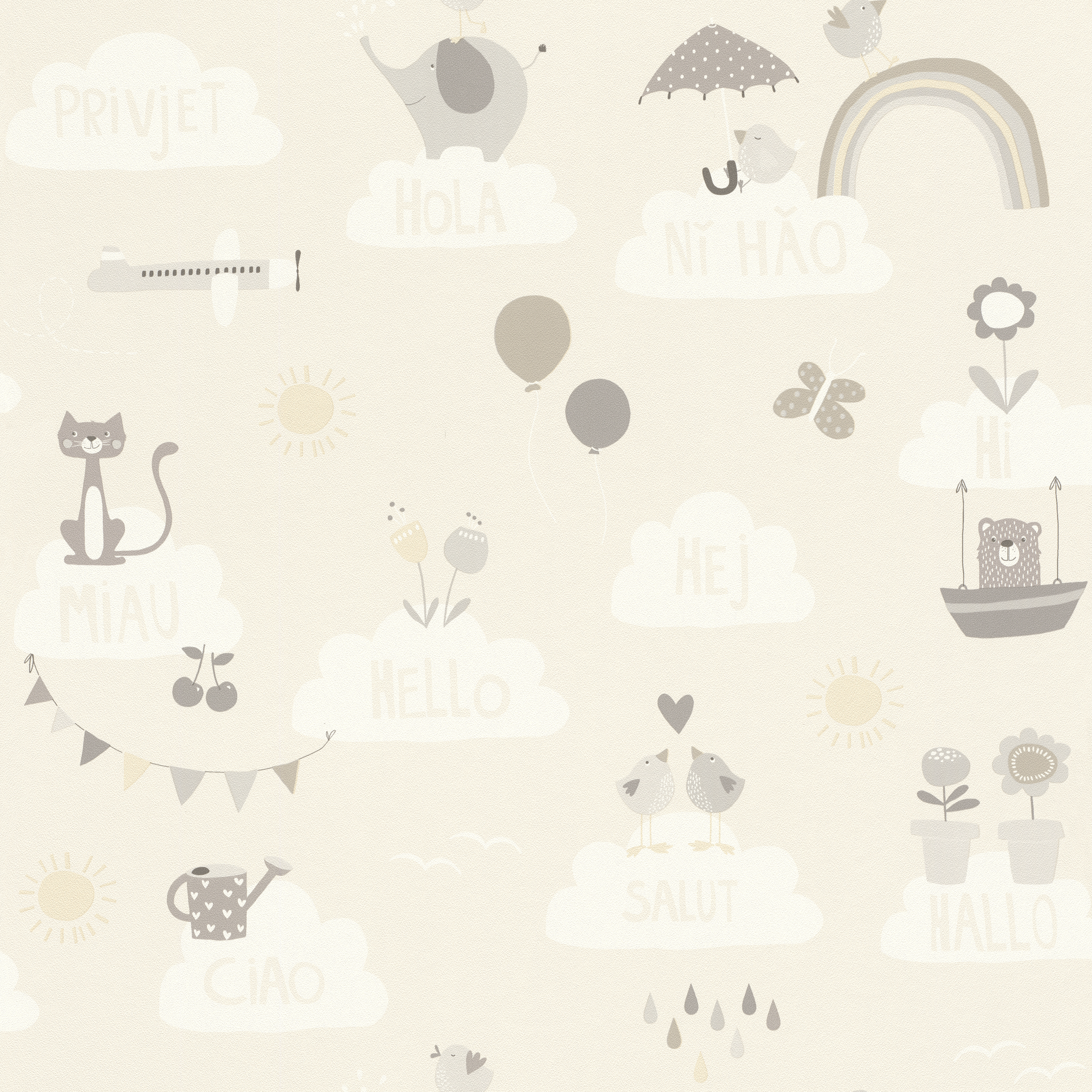 Vidám pasztelles állatmintás gyerek tapéta.