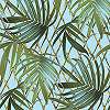 Vinyl dekor tapéta hímzett zöld pálmalevél mintával világos kék alapon