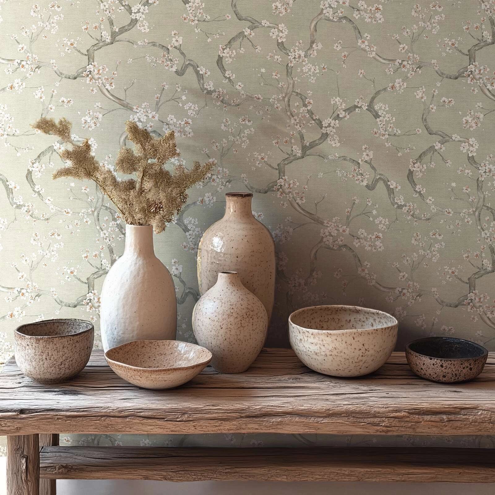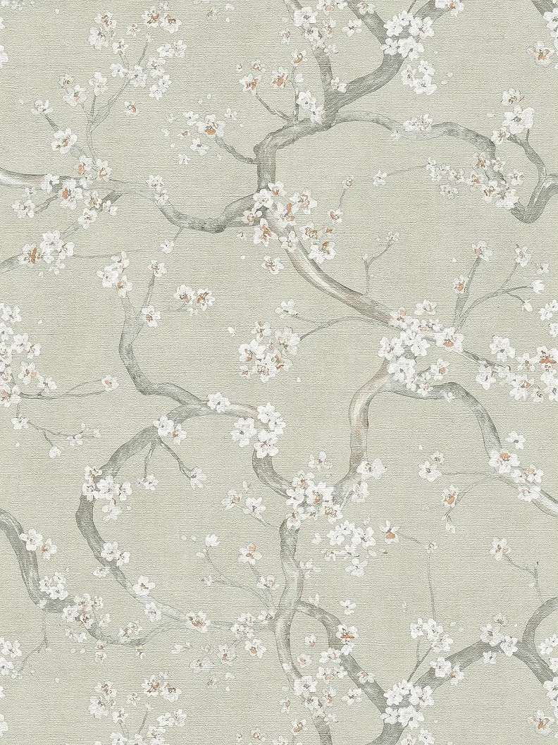 Vinyl tapéta cseresznyefa virág mintával menta színben