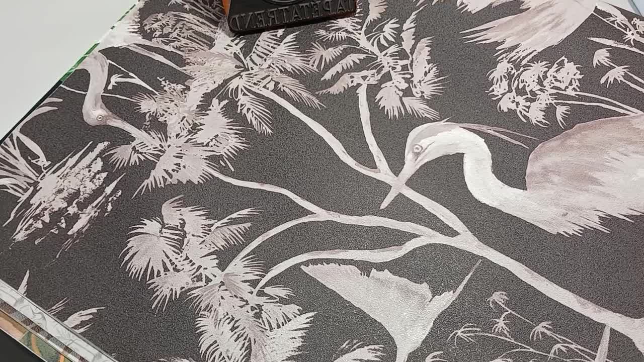 Vinyl tapéta keleties madár és botanikai mintával