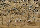 Vlies fotótapéta barna színű háttér eukaliptusz erdő daru madarak mintával