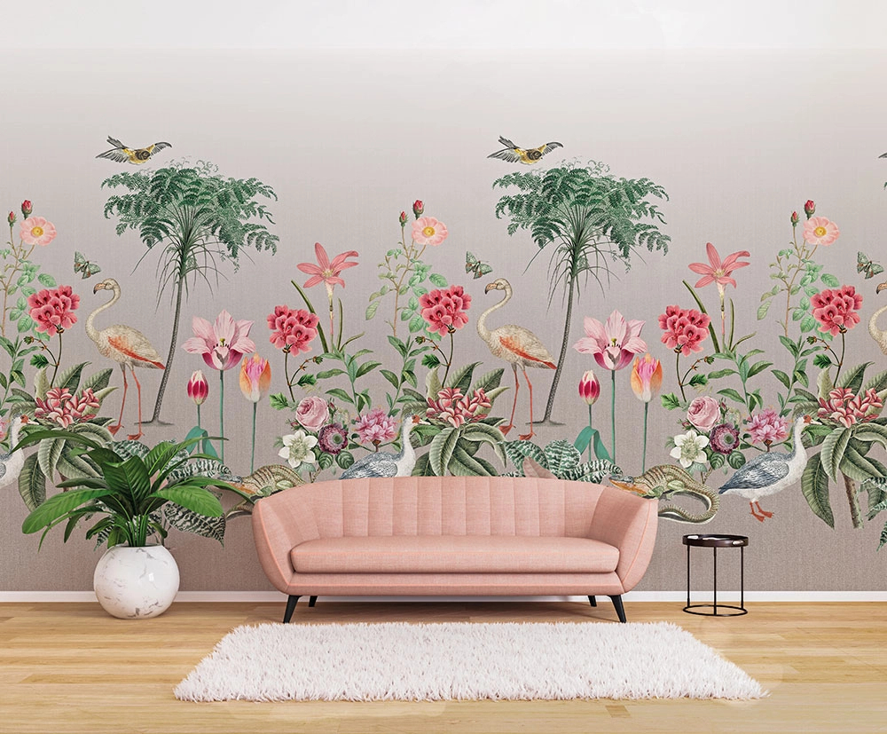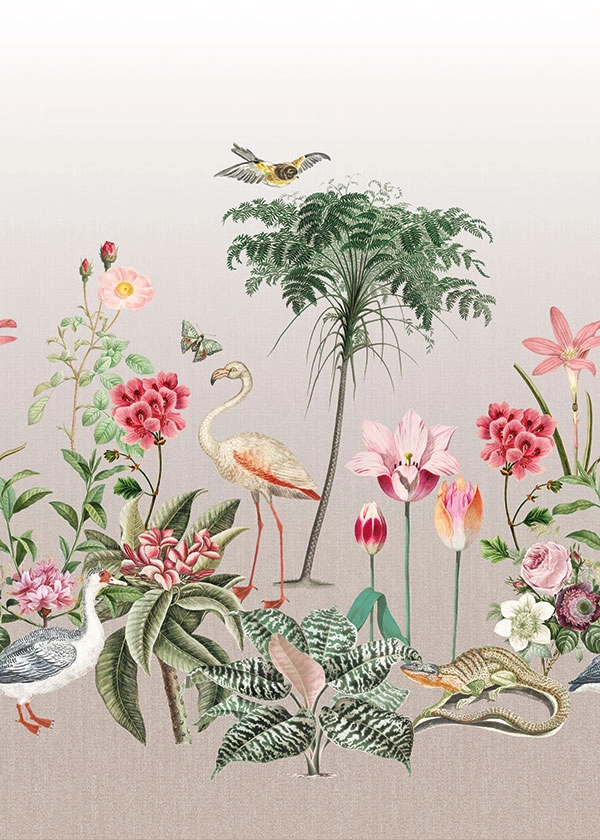 Vlies fotótapéta flamingó trópusi botanikus mintával